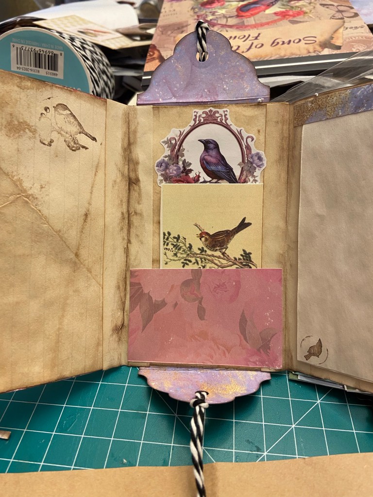 I write longhand and like to spread out my materials. When I make junk journals I like to have a variety of materials in front of me to use. I may think my writing and crafting plans through but much of it is done on the fly. The mere act of creation opens windows in our thinking and new ideas fly in.